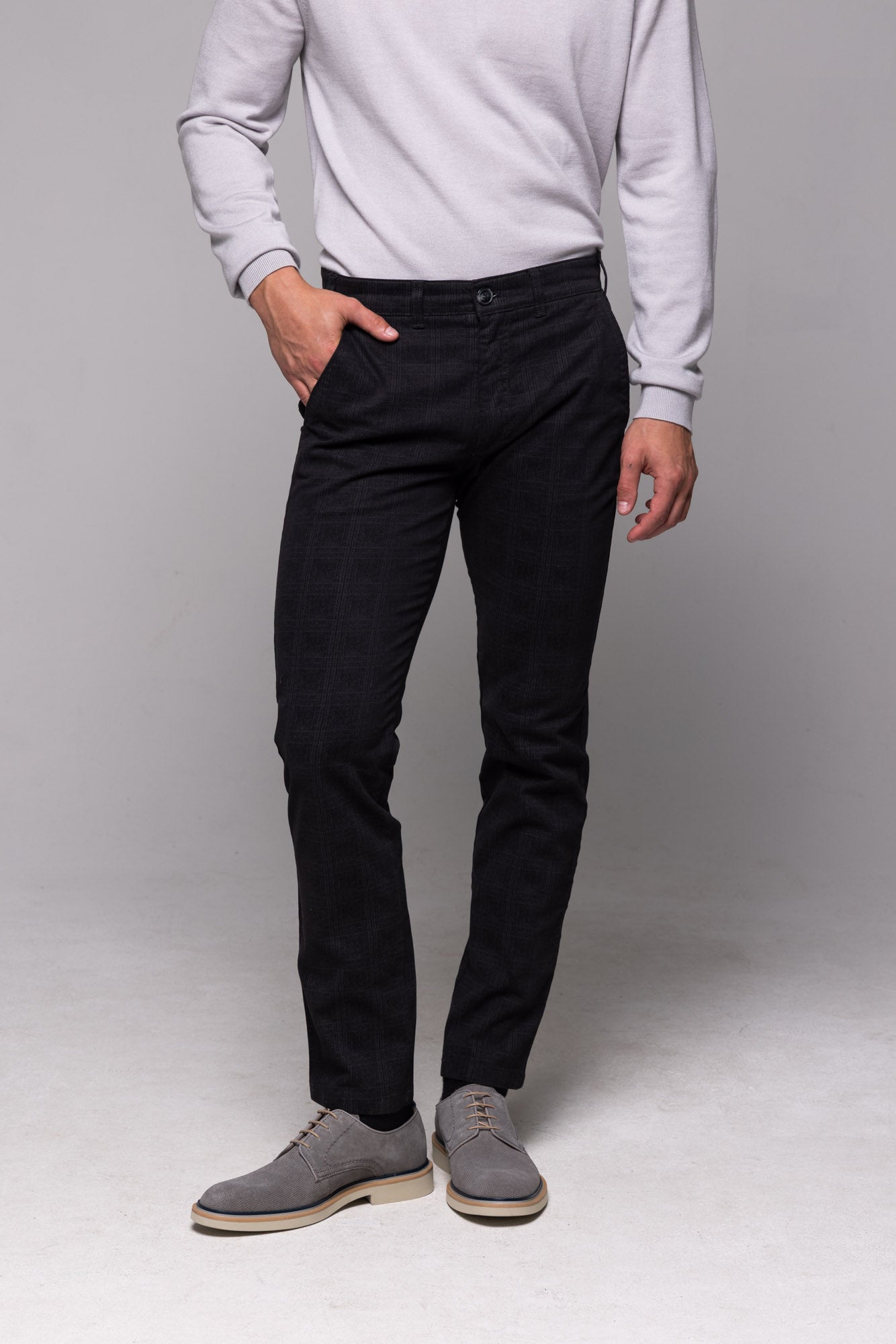 Čierne voľnočasové nohavice s jemným károm