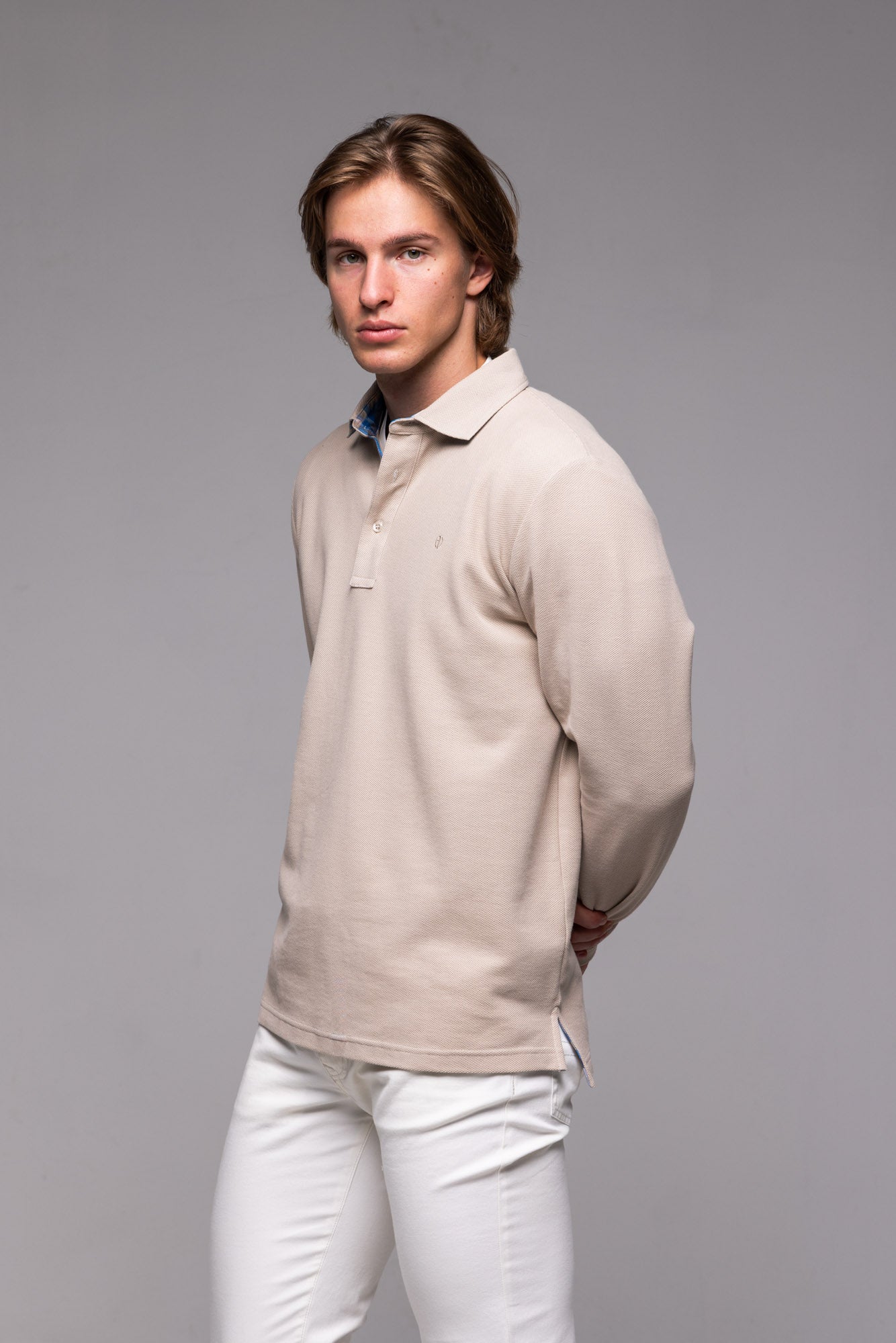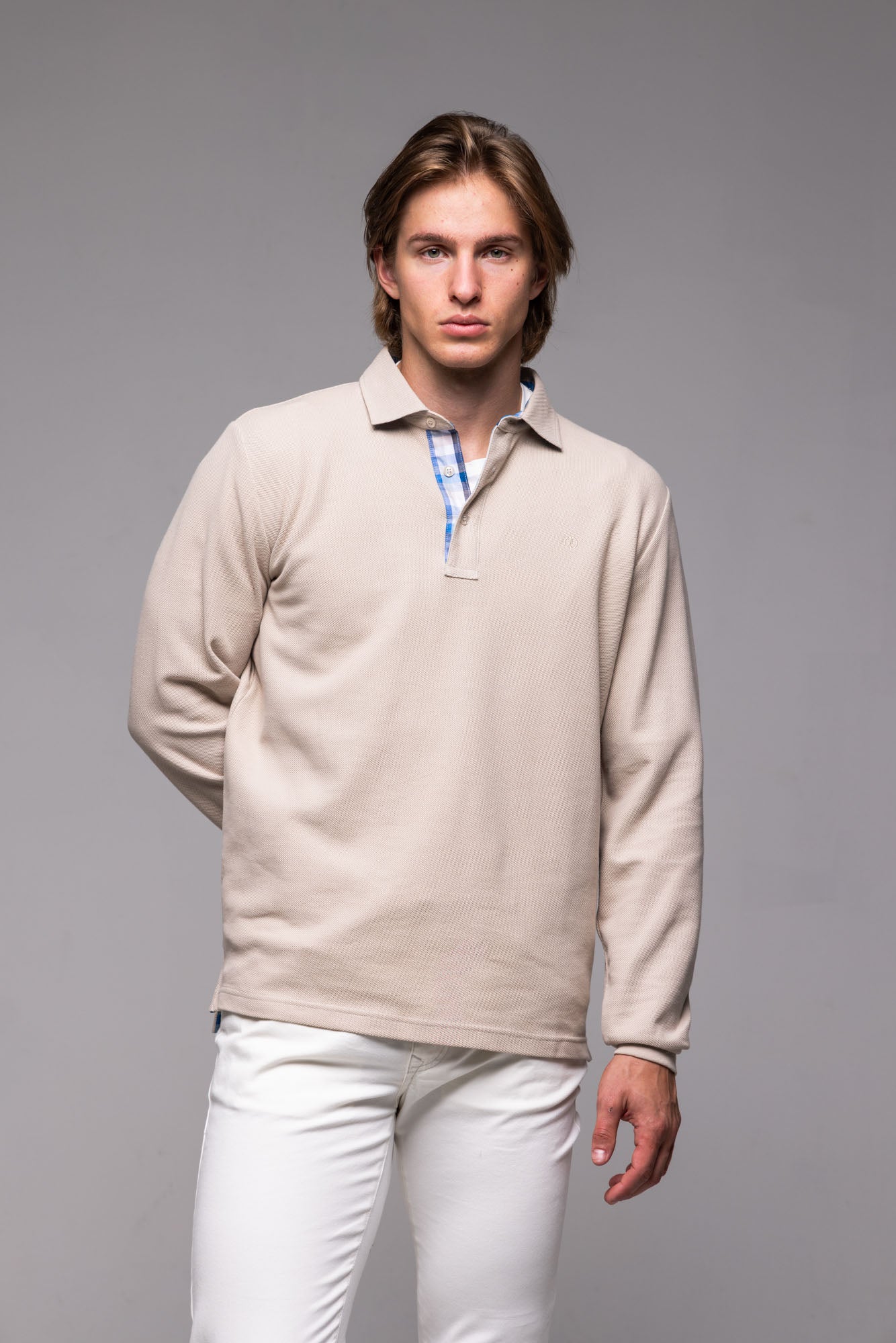 Béžová polokošeľa s dlhým rukávom